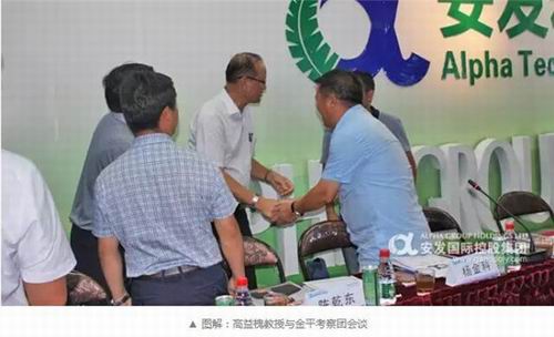 2016年8月10日由云南省红河州金平县委杨国椿书记率领的调研考察团一行6人莅临安发(福建)生物科技有限公司参观考察,旨在学习安发精准扶贫模式、结合金平自身环境资源寻觅合作机会。安发生物黎锦祥副总裁代表公司热烈欢迎来自老少边区的金平县领导考察安发生物,也真诚希望能够对金平的现状给予力所能及的帮助。为了更好地实现对金平的精准扶贫,安发生物还特意邀请了浙江大学“智慧农业”团队参与指导。
