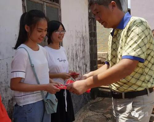 来到龙头村贫困学子家中,荟生(海南)健康产业有限公司办公室主任丁启润先生和荟生现代产业园龙头基地负责人曹彦杰先生分别为陆晖、吴蕊、吴清慧三位贫困大学生颁发助学金并赠送荟生健康产品。通过努力,吴蕊等三位学子以优异的成绩分别被海南大学、西安医学院、海南热带海洋学院录取。丁启润主任表示,“资助一个贫困学生,就成就了一个未来、一个希望,就弘扬了一种社会风尚,传递了一种社会真情。我们不求回报,只希望你们在大学好好学习,回报社会。”