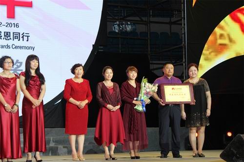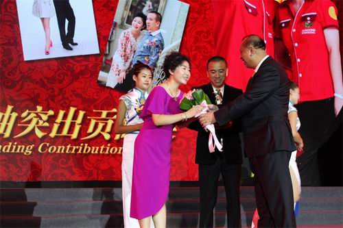 陪伴东升伟业十四年的华星系统创始人李岩松、矫捷伉俪获得了《忠诚领袖突出贡献奖》,于爱东董事长为李岩松、矫捷伉俪颁发奖杯。