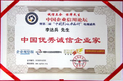 中脉李达兵荣获 “中国优秀诚信企业家”称号