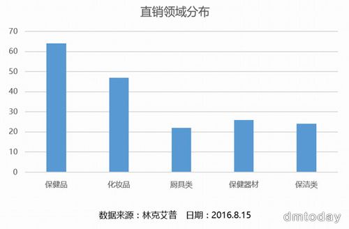 直销企业产品众多,且涉及多个领域。据调查,产品目前主要集中于以下方面:保健品、化妆品、厨具类、保健器材、保洁类。其中保健品所占比例最高,厨具类相对最低。