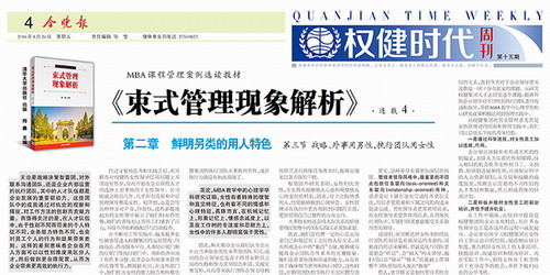 《束式管理现象解析》一书是由清华大学出版社精英团队,历经数月调研、考察、论证后,倾力打造出的一本管理类书籍,现已被清华大学列为清华MBA课程管理案例选读教材。