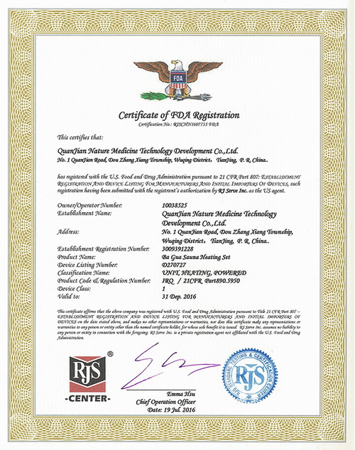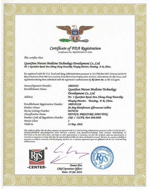 权健集团新增五款产品获美国FDA认证证书