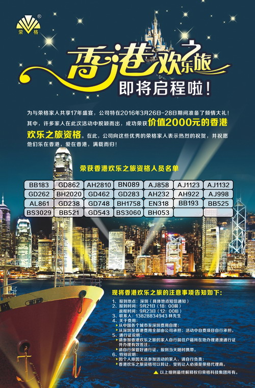 共享17年盛宴 荣格香港欢乐之旅即将启程