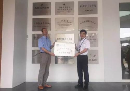 江南大学化学与材料工程学院杨成院长向人力资源部总监管同刚颁发了化学与材料工程学院工程实践基地荣誉。