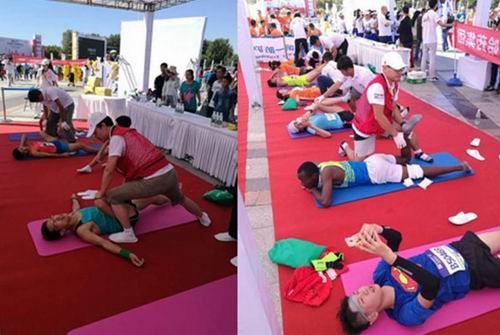 哈药集团携手第一防护为参赛选手做赛后恢复。
