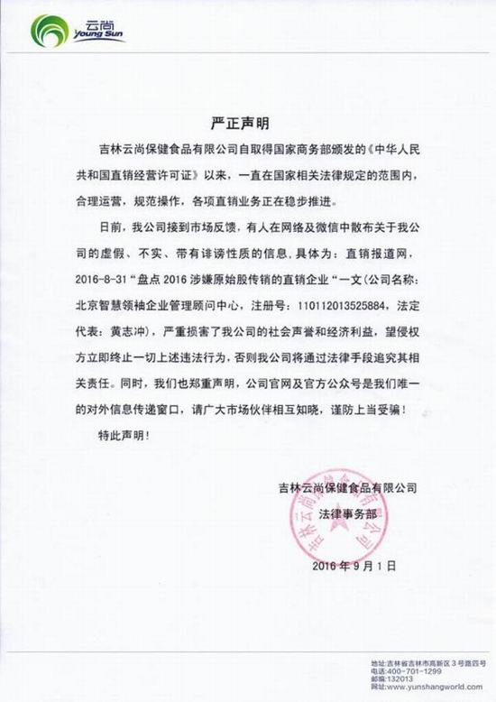 - 云尚发布肺炎疫情期间规范直销活动的通知