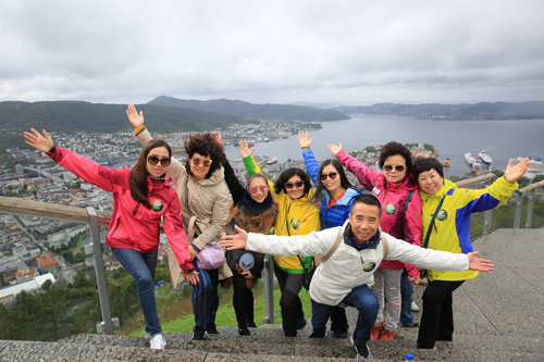 在挪威第二大城市卑尔根,大家游览了海边小镇布里根——这里的建筑大多是木结构古老房舍,曾于1979年被联合国教科文组织列为世界文化遗产。大家搭乘缆车前往卑尔根最高峰——弗罗伊恩山巅,驻足山顶极目远眺,群山与峡湾环抱的卑尔根风姿尽收眼底。在这里,大家还兴致勃勃地开始了健康畅走。尽管国珍健康畅走活动在国内举办了多场,但走向国外还是首次。大家意气风发地徒步前行,放松身心,畅快呼吸新鲜空气,在相互扶持和鼓励中走向快乐的终点,向国际友人传递了绿色健康的理念。