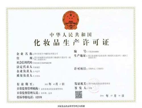 化妆品生产许可证