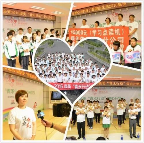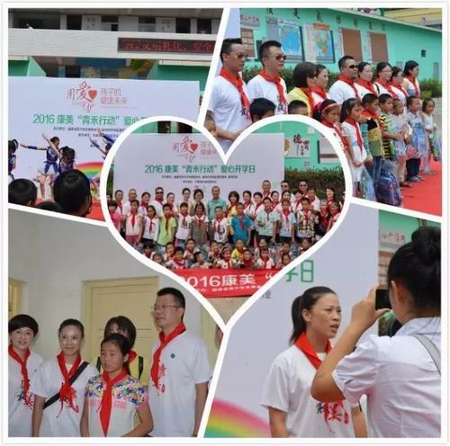 为解决孤贫儿童大病救助难题,9月5日,由福建省青少年发展基金会、福州市市场监督管理局、康美药业联合主办,共青团永泰县委员会承办的2016康美药业“青禾行动”爱心开学日活动在永泰县霞拔中心小学举行。康美时代福建分公司及部分当地经销商,为永泰县当地近百名受助学童派发了一年期10万元保额的健康公益保险,帮助他们抵御大病威胁。活动现场,受助学童不仅收到来自康美药业的公益保险卡,还有总价值10000元的“康美爱心礼包”,在秋季开学首日,收获满满关爱。福建当地主流媒体东南快报、福州市电视台、 永泰县电视台等给予了报道。