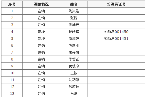 9月7日,商务部直销行业管理信息系统公布如新(中国)日用保健品有限公司直销培训员备案信息。如新本次新增直销培训员2人,注销11人。详细讯息如下: