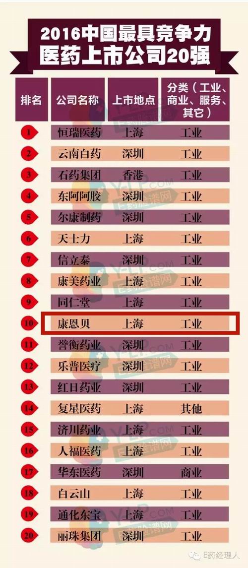 日前,由中国医药企业管理协会主办,E药经理人杂志、和君咨询集团承办的“2016年(第八届)中国最具竞争力医药上市公司20强”揭晓。凭借在动荡的资本市场和激烈的行业环境中展现的出彩风险应对能力、不凡核心竞争力和未来发展潜力,康恩贝继2015年后再次入选该榜单,列第10位。