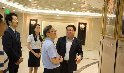 来到辉煌的荣誉展厅,来宾们纷纷夸赞荣誉展厅很大气!在荣誉走廊,李万年主任为来宾们特别介绍了16年前时任福建省省长的习近平参观金日工厂和3年前习近平同志在北京人民大会堂接见金日集团董事长李仲树的情形。