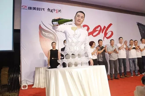 ▲郑总代表公司开香槟,标志着庆功晚宴的盛大启动!
