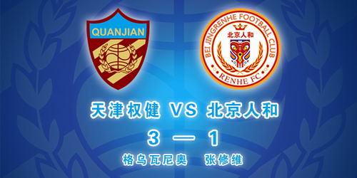 权健队3比1胜北京人和队 取得冲超重要胜利