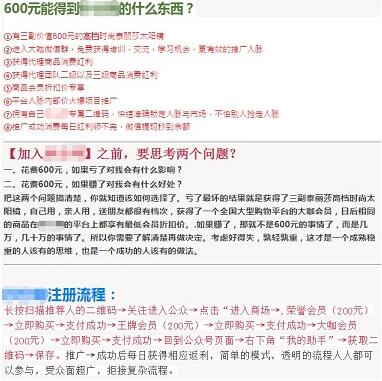 公告中称,近期,平台发现有用户利用微信关系链,通过微信公众帐号实施多级分销欺诈行为,发布分销信息诱导用户进行关注、分享或直接参与。此模式多数包装为新型商业模式、创新金融产品、互助扶贫、国家帮扶计划等,本质在于利用关系链发展人员,形成多级上下线关系,按照下线人数或者销售业绩计算盈利,与传销行为类似,一定程度上具有金字塔欺诈、庞氏骗局等特征。