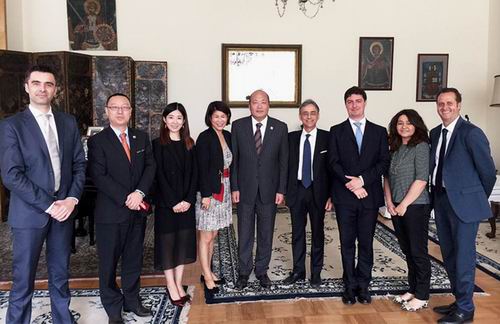 李金元董事长(中)与意大利驻华大使谢国谊(右4)亲切合影