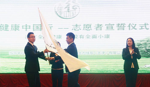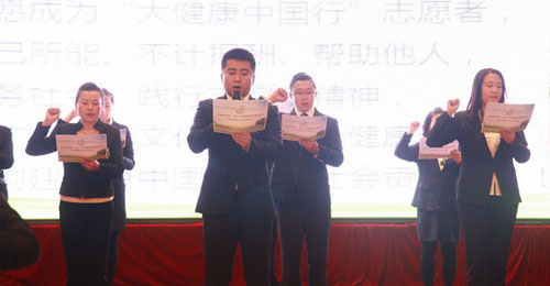 随后,吴宽经理带领各地大健康中国行志愿者进行授旗仪式和宣誓仪式,把大会气氛推向高潮,让大家感受到了推广大健康事业的决心,感召更多的朋友加入志愿者行列,现场所有的大健康中国行志愿者斗志昂扬,激情满怀!