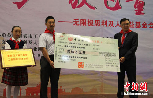 9月21日,无限极(中国)有限公司携手淮安市工商局、淮安市教育局,通过思利及人公益基金会向淮安工业园区实验学校捐赠善款20万元人民币,主要用于帮助学校添置、完善体育用品,并设立相关的体育项目电教室,以便让该校逾千名学生可以更好地体验和参与体育活动,更加健康茁壮地成长。