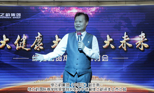 直面经济与行业新常态,在坚持“大健康产业集群”战略规划方向不变的基础上,借助国际资本的力量全力推进绿之韵的国际化发展,是2016年绿之韵在创新发展征程中的一大亮点。面对线上线下90000多名绿之韵家人,绿之韵集团(中国区)副总裁·绿之韵国际商学院荣誉院长张力中针对“美国考察之旅的成果”“企业上市的优势”“美国证券市场概况”“纳斯达克的红筹模式”“上市股票代码”等系列情况进行了全面的阐述,重点讲解了绿之韵股权认购方案,绿之韵事业成功上市的利好消息极大地振奋了线上线下每一位绿之韵家人的心。