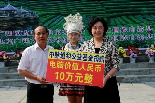 在莅临活动现场的各位领导的共同见证下,中脉道和公益基金会将10万元善款捐助柳州三江林溪镇高友小学,这10万元善款将用于该学校的电脑教室建立及电脑、网络设备等,为孩子们能够早日开展信息化课程、体验互联网交流打下良好基础。
