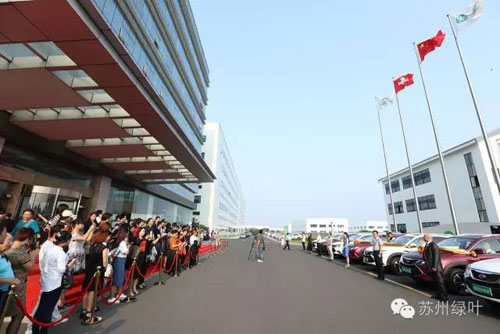 下午15:58分,在向各位车主代表颁发象征着速度、激情和梦想的新能源汽车钥匙后,徐建成董事长隆重宣布绿叶集团绿动力新能源汽车发车仪式正式起航。在产业园现场1000多名绿叶家人的共同注目下,新能源车队有序出发,列队行驶在绿叶集团产业园整洁的马路上。绿动力新能源车队雄壮威武的气势,鼓舞着全体绿叶人在梦想的路上极速前进!