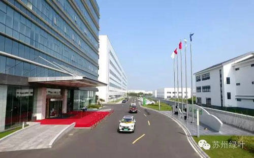 雄壮威武的新能源车队在绿叶集团产业园内极速行驶