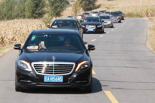 ▲行驶在尚赫公益之路上的尚赫爱心车队