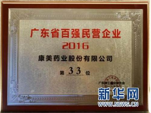 为大力推动大型骨干企业培育工程,不断提升民营经济整体实力,今年省工商联首次开展“广东省百强民营企业”排序工作,以2015年企业营业收入为基本标准,以企业会计年表为依据,经有关部门审核排序,产生了“2016广东省百强民营企业”榜单。康美药业凭借令人瞩目的经营业绩以及雄厚的综合实力位列榜单第33名。