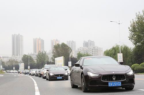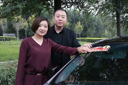 ▲寰宇大使石爽、辛睿伉俪为爱心车队贴上尚赫标志