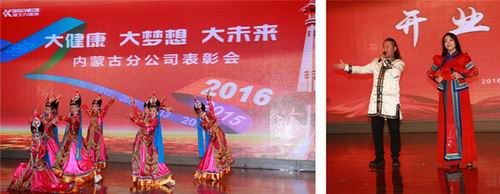 会上除了隆重的表彰和精彩的演讲外,独具特色的草原节目为我们带来了超乎想象的视听感受。本次内蒙古分公司开业庆典暨2016年上半年表彰会在司歌《生命因你而辉煌》激昂的歌声中圆满落幕,一个已经崛起的朝阳行业让我们相聚在一起,一群为梦想努力拼搏的伙伴让我们勇往直前,“幸福一家 健康全球”的希望之光在内蒙古大草原点燃,所有大健康事业伙伴为了同一梦想而努力不懈。