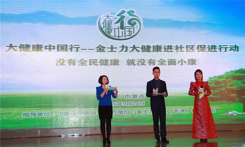 2016年9月24日,“大健康中国行——金士力大健康进社区促进行动”在内蒙古召开。这场备受关注的盛会得到了社会各界的广泛关注,现场盛况空前。内蒙古自治区人大常委会副秘书长姜月忠,内蒙古人大常委委员、科教文卫主任吴培荣,内蒙古自治区政府巡视员葛力大,内蒙古卫生厅原副厅长裴政峰,呼和浩特市回民区药监局副局长刘明琦,呼和浩特市赛罕区政协副主席高之健,呼和浩特市工商联副主席樊晓明,呼和浩特市工商联调研处处长李忠善,联合国气候大会观察员、中国食品报中国食品网总编邢彦春,内蒙古商报社原副社长赵逵,网易内蒙古总编辑杜晓静,内蒙古晨报副总编辑张伟,医学博士、内蒙古自治区人民医院心脏中心血管内科副主任医师贺文帅,内蒙古医科大学教授、硕士研究生导师张立东,金士力佳友副总经理张硕,市场部总监张浩,销售支持中心总监张辉,东北大区销售总监潘爱国,销售支持中心经理付裕,辽宁分公司经理杨金柱,内蒙古分公司经理赵岩,黑龙江分公司经理吴宽莅临,同时大会吸引到来自内蒙各地的近500名大健康事业伙伴及周边地区慕名前来的市民朋友。