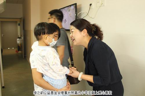 在得知了“小芊玉”的情况之后,绿之韵公益基金会理事长劳嘉亲赴医院探望,并将爱心善款送到小芊玉父母手中,并表示,绿之韵集团将会持续关注“小芊玉”的治疗情况,她也呼吁更多的爱心人士伸出援手,帮助“小芊玉”早日战胜病魔,快乐健康地长大。在爱的接力下,小芊玉即将赴北京接受骨髓配型。关爱生命,绿之韵与爱同在!
