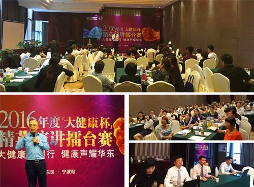 2016年9月26日,“大健康杯”精英演讲擂台赛华东区宁波站培训海选赛成功举行。金士力佳友教育培训部高级讲师邓杰中先生、华东区经理李明浩先生、浙江分公司经理张珩女士、江苏分公司经理陈超先生、上海分公司经理史勇军先生、华东区讲师刘东华女士莅临现场担任大赛评委并为参赛选手悉心指导,期间100多位大健康精英参加了本次比赛。
