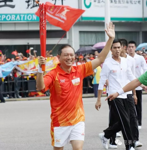 在第16届亚运会中,他以唯一华人华侨代表的身份成为首站中山火炬手。接力第66棒火炬,他一手高擎火炬,一手向路旁的观众挥舞致意。迈开矫健的步伐,舞动挺拔的身躯,他跑过1分30秒精彩、宝贵的150米。他代表完美人传播着体育赛事不唯竞技,更珍惜健康、快乐、趣味的体育精神。