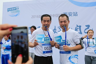 就这样,直到上午9时,风雨逐渐减小,乐队精彩开唱,2016如新健康中国行西安城墙马拉松正式拉开帷幕。