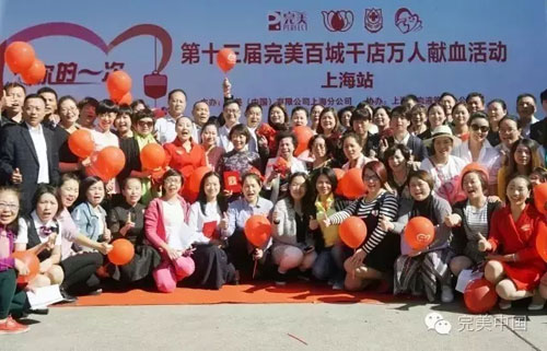 在完美公司的积极倡导和大力推动下,上海分公司已经在上海成功举办了十二届无偿献血活动,参与上海站活动的志愿者逾3000人次,无偿献血总量超过40万毫升,分公司继荣获“2008-2009年全国无偿献血促进奖”后,又荣幸地成为上海唯一一家获得“2010-2011年全国无偿献血促进奖特别奖”称号的单位。