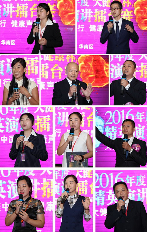 在参赛者预演导师教练环节中,由金士力华南区域经理邓大成,教育培训部讲师李姣,绩优经销商林A、朱百喜、林洁以及2015“金鹰盛典”金话筒奖得主刘建组成的导师评委团更将自己的演讲心得倾囊相授,林A语重心长、朱百喜雷厉风行、林洁温文尔雅、刘建侃侃而谈、李姣细致精辟、邓大成能言快语,几位评委的点评一针见血、妙语连珠,获得了学员们的连连点头认同,也成为本次大健康擂台赛的又一大亮点,让人印象深刻。