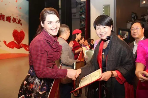 绿之韵集团党委书记刘云为国际慈善友人安娜女士颁发证书