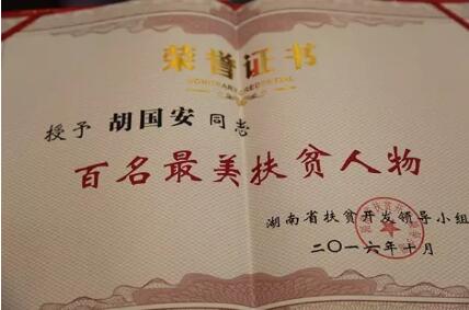 胡国安被授予湖南“百名最美扶贫人物”称号