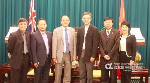 图解:王德生顾问、高炜总裁、高益槐教授、王鲁彤大使、张帆参赞、陈晓燕总经理合影留念(自左起)