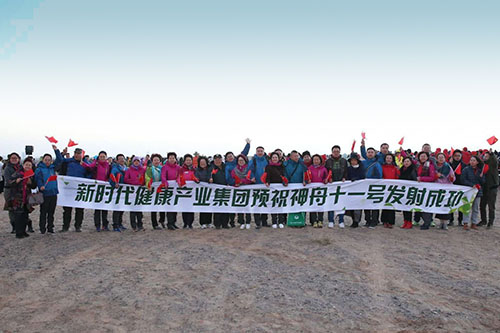 令我们所有新时代人为之骄傲的是,新时代健康产业集团副总会计师张欣与陈绪松、佟彩英两位星级服务网点负责人乘坐专机前往酒泉卫星发射基地,包括2015至2016考核年度内新晋三星及以上服务网点负责人与市场伙伴,共100名新时代人应中国航天基金会邀请,在酒泉卫星发射基地亲历了这一重要的历史时刻!当火箭点火升空的那一刻,在场的新时代人为之震撼,为之自豪,他们激动地说:能够亲临现场,感受震撼人心的一刻,这是新时代人的荣耀!我们新时代人祝福祖国繁荣昌盛,祝福中华民族奋勇崛起!