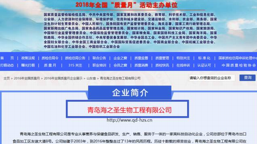 2016年9月,海之圣应邀参加2016全国“质量月”企业质量诚信倡议专题活动,共同向全社会发出企业界铿锵有力的质量诚信倡议,并收获“全国质量诚信标杆典型企业”称号。海之圣的质量工作经验业绩、质量体系建设得以展现,获得诸多行业媒体报道之际,也得到了社会各界的广泛认可。
