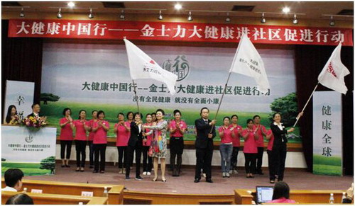 为响应十八届五中全会提出的“积极推进健康中国建设”的号召,10月15日,“大健康中国行”公益活动在广东省顺德隆重举行。金士力佳友华南区销售总监李莉清女士、广东分公司经理杨春娜女士、华南区公共事务经理何智敏先生以及资深医学专家彭良坤先生、广东省肝病学会脂肪肝专业委员会常务委员张扉越先生、广州形美亚健康调理中心主任刘伟先生、中国狮子会联会关爱委员会秘书长许静女士连同华南区绩优经销商张丽莉女士、陈理变女士、陈红英女士、杜泽辉先生、高纪强先生等过百名大健康志愿者参与了本次活动。