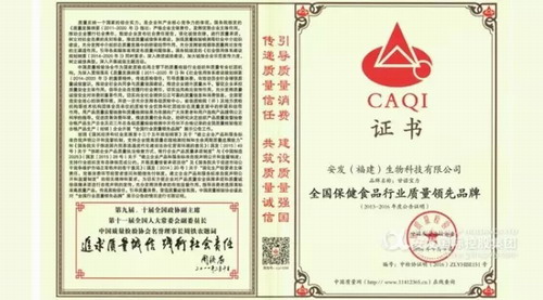 金秋十月,硕果累累。由中国国家质检总局联合中宣部、发改委、工信部等42个相关部门及行业协会共同举办的,以“提升供给质量 · 建设质量强国”为主题的“2016年全国质量月”活动完美的落下了帷幕。在此次的“质量月”活动中个,安发(福建)生物科技有限公司凭借着多年来先进的产品工艺及过硬的产品质量,荣获了由中国质量检验协会颁发的《全国保健食品行业质量领先品牌》及《全国质量信用先进企业》称号。