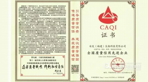 安发获《全国质量信用先进企业》等两项殊荣