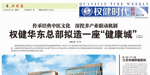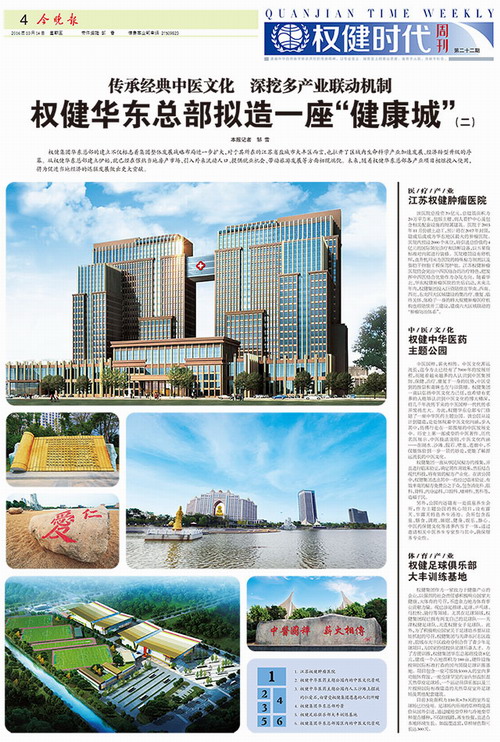 2016年10月14日,《今晚报•权健时代周刊》整版刊登《权健华东总部拟造一座“健康城”(二)》报道。