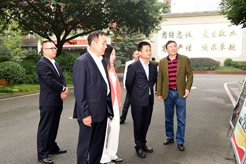 迎着蒙蒙细雨,杨总与同行人员一起步入七中八一学校校园,学校领导为到场嘉宾详细介绍了学校历史、师资等情况。