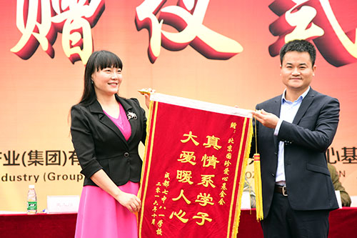 杨总代表公司及北京国珍爱心基金会向学校捐赠励志奖学金