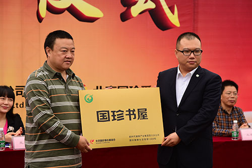 四川分公司经理阮野向学校授予“国珍书屋”铜牌